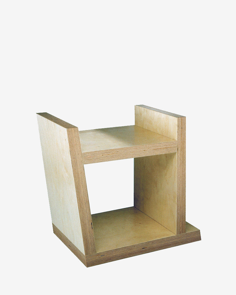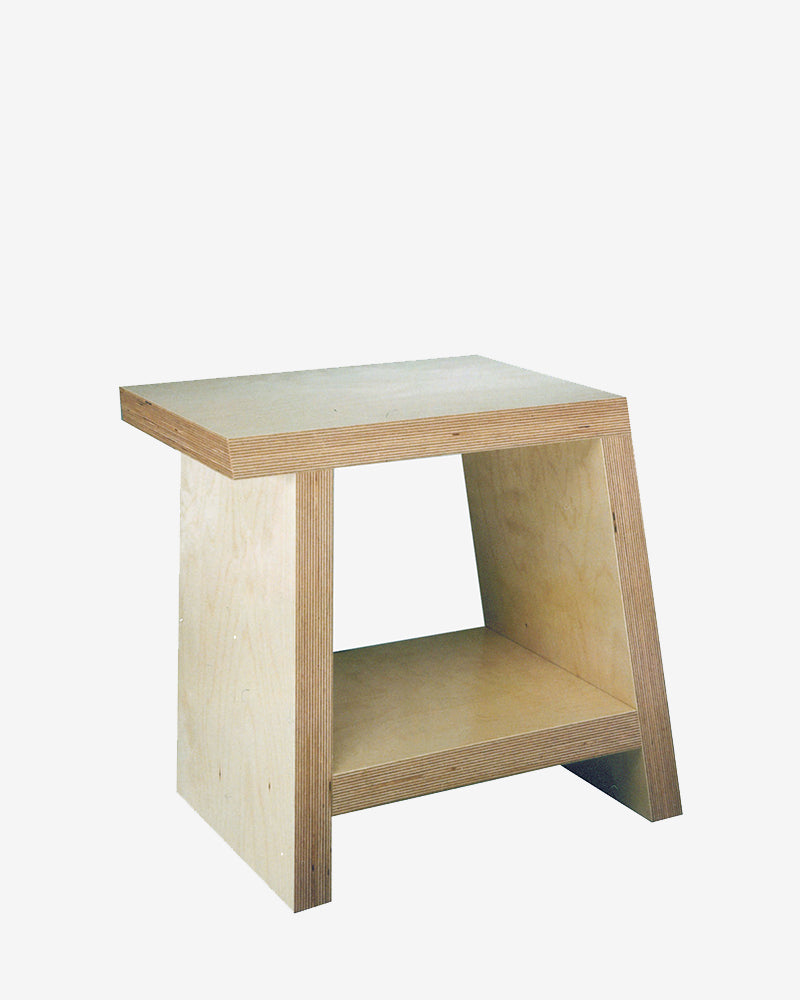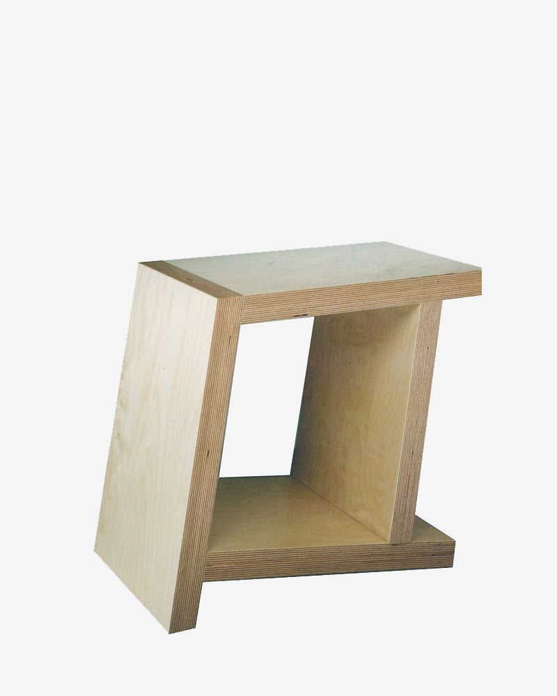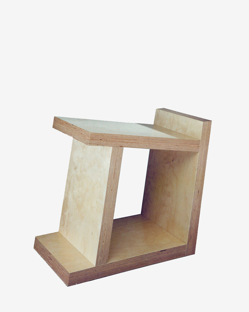 Couper et assembler les pièces selon un angle permet de positionner ce meuble suivant 4 positions différentes et ainsi satisfaire 4 fonctions essentielles: tabouret bas, porte revue, chevet, table basse…